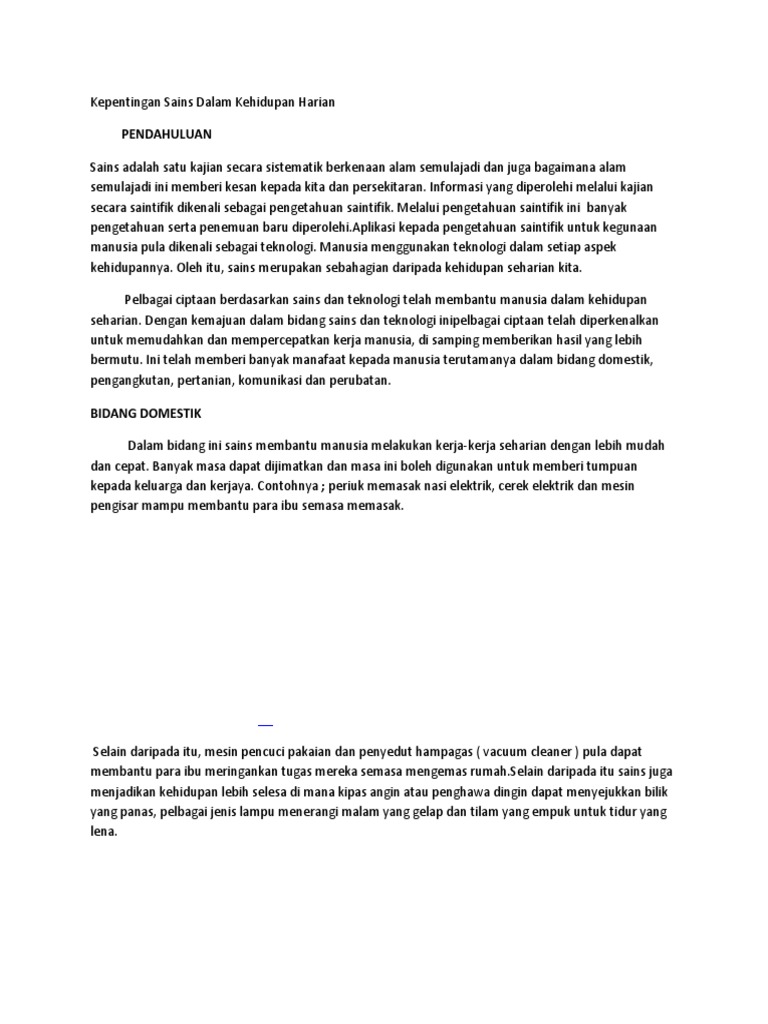 Kepentingan Sains Dalam Kehidupan Harian Pdf